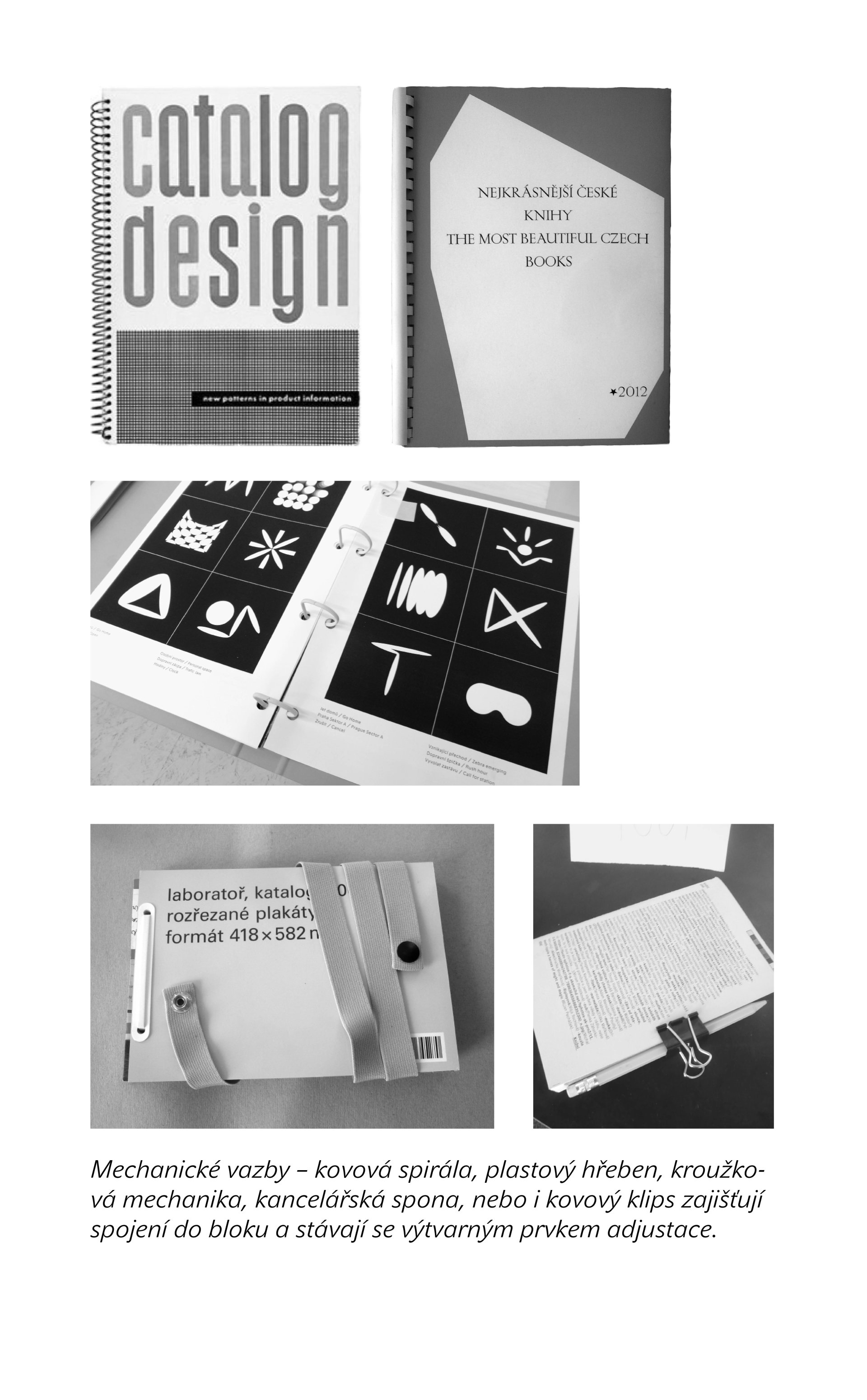 Knížka je určena zejména grafikům, návrhářům knižních adjustací. Měla by je osmělit k použití konstrukce při výtvarném zpracování knižních vazeb. Autor představuje konstrukci z trochu jiného úhlu pohledu, a to jako předmět kreativní úpravy prostřednictvím jednotlivých konstrukčních elementů. Elementy knižní vazby navazují na předchozí titul Stavíme knižní vazbu, v němž byly jednotlivé konstrukční prvky definovány. Nyní jsou ukázány v oborovém, výtvarném i technologickém kontextu. Autor čerpá inspiraci v pedagogických metodách Bauhausu, které jsou založeny na výstavbě výtvarného díla z elementárních výtvarných prvků. Konstrukční prvky knižní vazby jsou použity jako díly stavebnice. Výtvarné hodnoty předmětu je dosaženo vzájemnou kombinací prvků do funkčních a estetických celků. Technické ilustrace, grafika a knižní vazba Jan Hybner. Tisk obálky René Řebec.