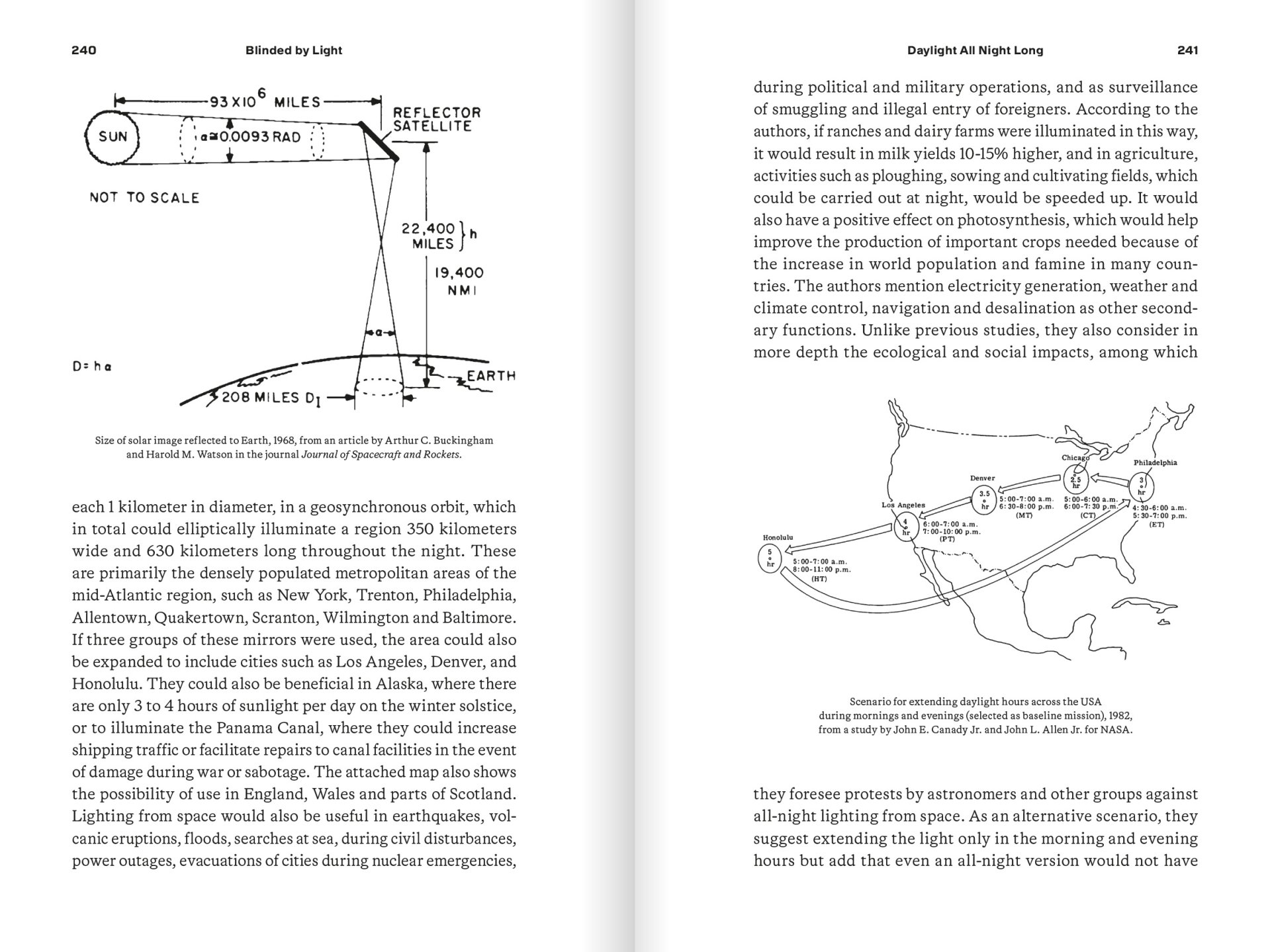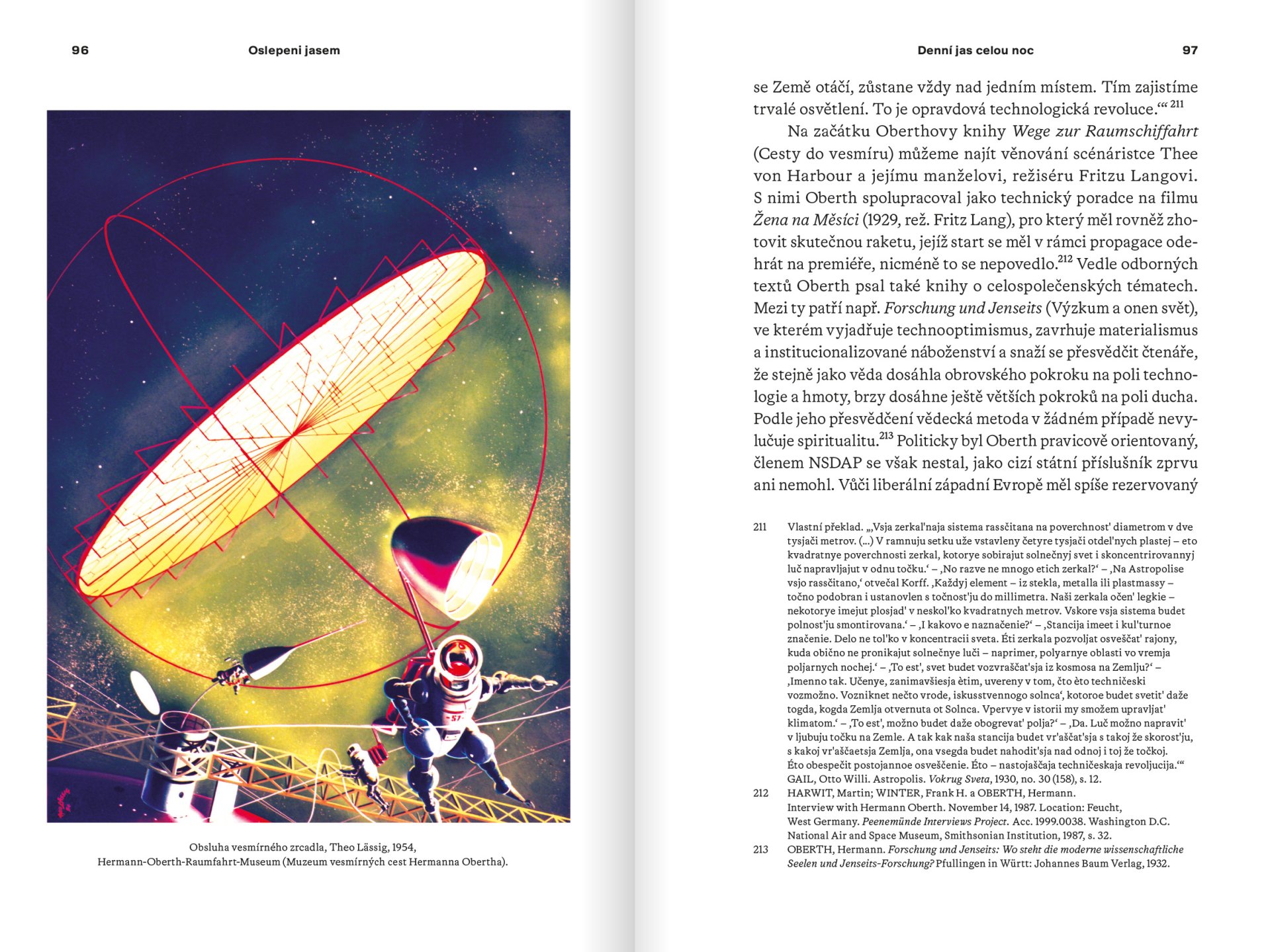 Je neustálé osvětlení stírající rozdíly mezi dnem a nocí snem modernity, anebo noční můrou? Když si posvítíme do těch nejtemnějších koutů, znamená to skutečně i to, že lépe vidíme a všemu rozumíme? Nebo nás všudypřítomný jas může i oslepit? První část této knihy vymezuje a shrnuje dosavadní výzkum tématu kolonizace noci a sleduje její důležité projevy od starověku do současnosti. Druhá část už je specifičtěji orientovaná na problematiku osvětlování nočních oblastí vesmírnými zrcadly. Vůbec poprvé komplexně mapuje historii těchto plánů od jejich počátku ve 20. letech 20. století až do současnosti a zasazuje je do sociálního, politického, kulturního a environmentálního kontextu. Grafika Jan Novák, Nikola Ivanov. Vychází česko-anglicky.