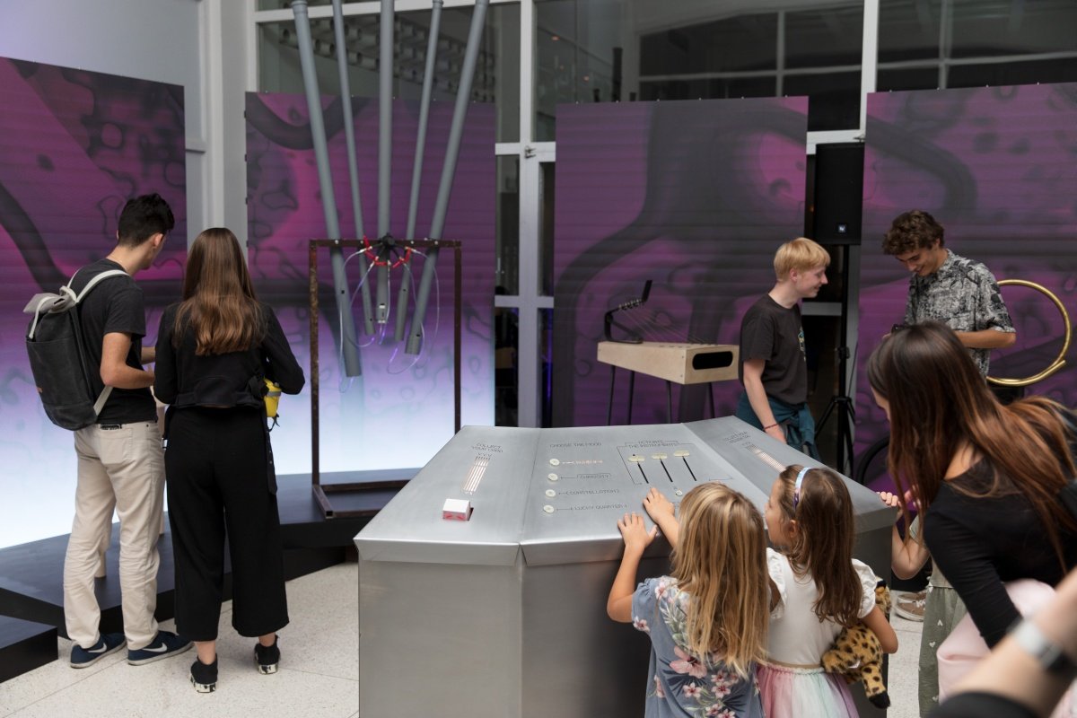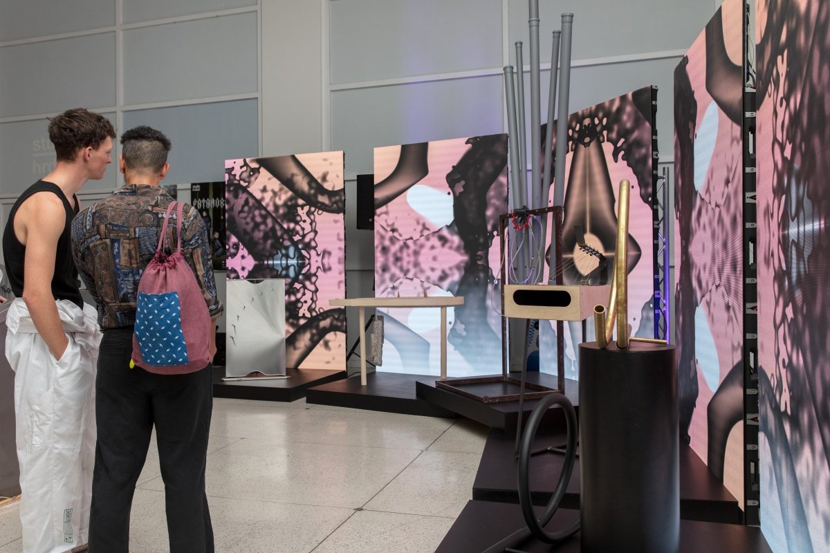 Multimediální projekt studentek a studentů UMPRUM.wav bylo možné navštívit ve vstupních prostorách Studia Hrdinů. Nabízí cestu k pochopení struktury hudby a nevšední pohled na hudební nástroje. Poprvé byl představený během letošního milánského design weeku. Projekt, jemuž dominoval Ateliér produktového designu pod vedením Michala Froňka a Jana Němečka, nabídl cestu, jak vnímat hudbu i hudební nástroje netradiční perspektivou. Propojení světa hudby se světem designu prezentovaly unikátní autorské hudební nástroje kombinující netradiční akustické i vizuální kompozice. Speciální mixážní pult vybízel ke hře se zvukem a návštěvníci se tak mohli ponořit do duality analogového i digitálního, akustického i vizuálního experimentálního zážitku. Kolaborativní projekt je završením spolupráce napříč produktovým, grafických a digitálním designem, ale i dlouhodobé kooperace designérů, předních českých hudebníků a teoretiků hudby. Aktivně se do něj zapojila například hudebnice a skladatelka Never Sol nebo firma Quix.
