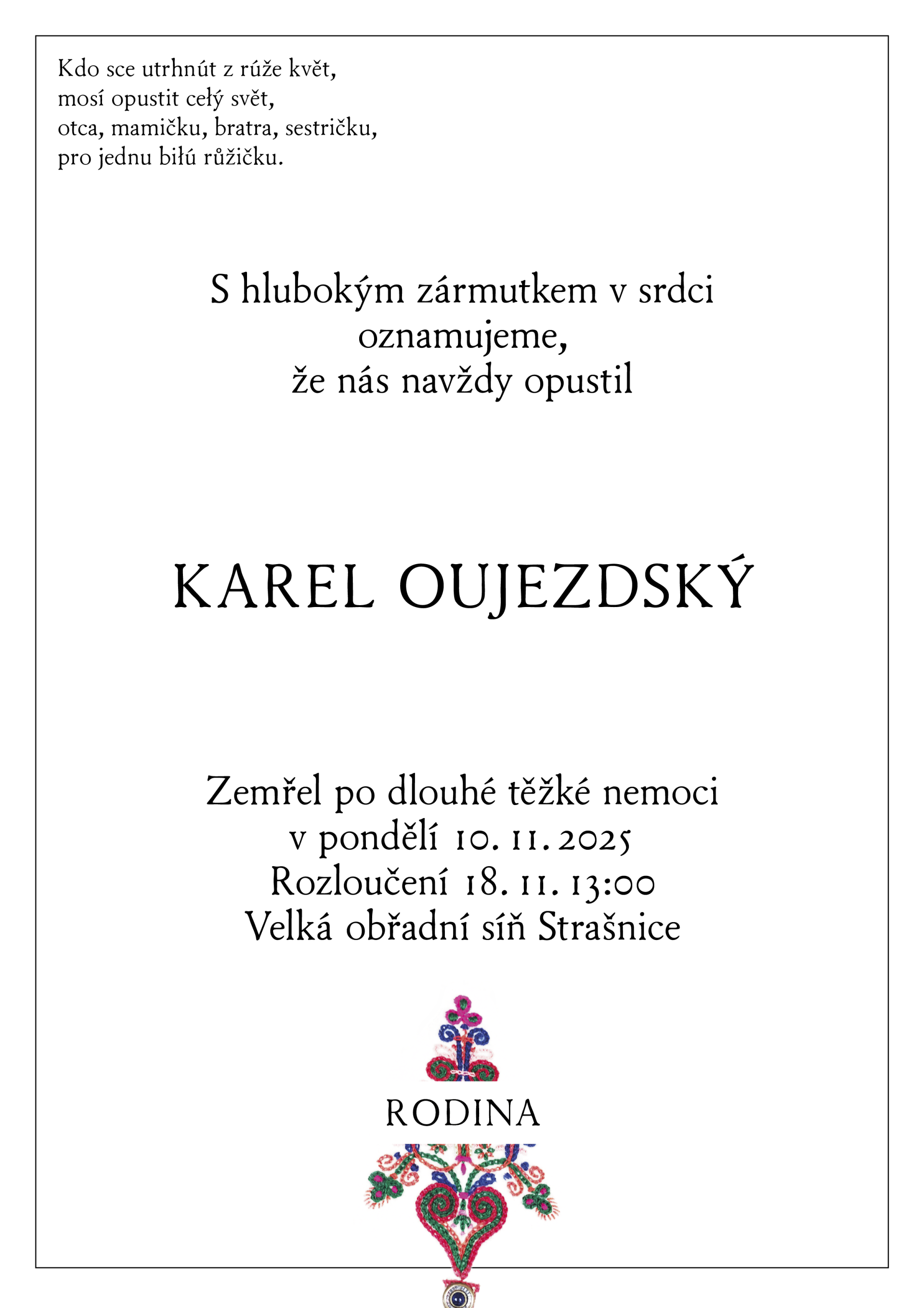S velkým smutkem informujeme o úmrtí novináře a dlouholetého redaktora Českého rozhlasu Vltava Karla Oujezdského.