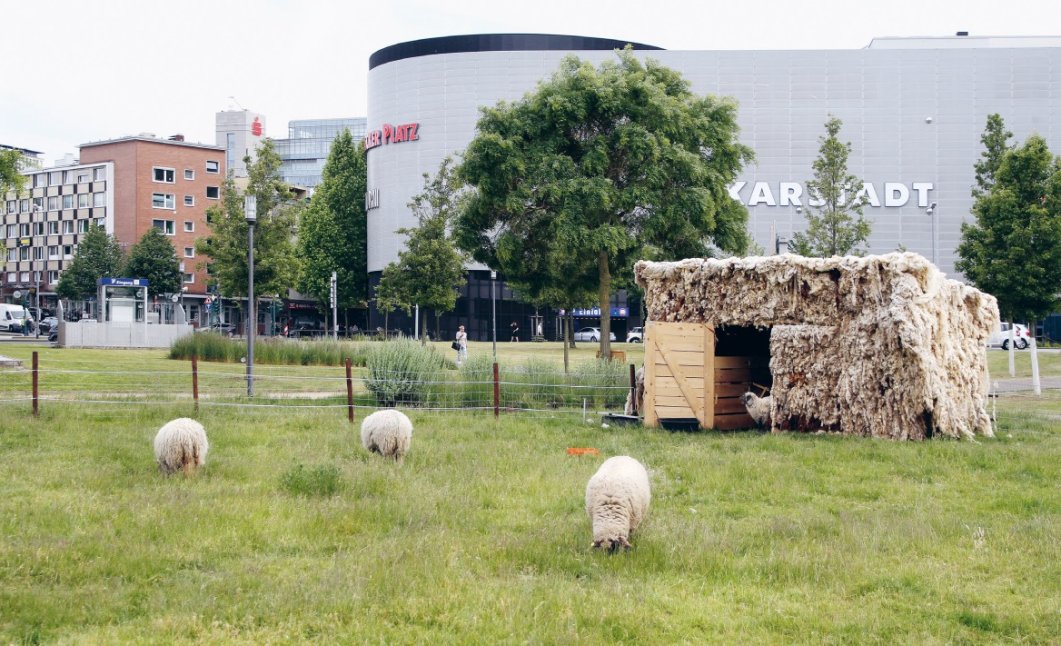 WOLLBAU interweaves artistic and architectural projects focused on sheep wool and its processing. Although raw wool is highly versatile and represents a renewable natural material, it has in recent years been treated as a worthless byproduct. Folke Köbberling works with this supposedly waste material in large quantities, creating architectural situations that open new ways of understanding this remarkable fibre and seek to anchor it more firmly in architecture, public space, and society at large.