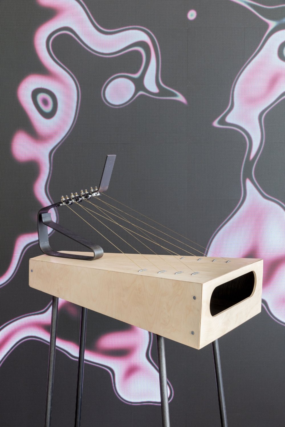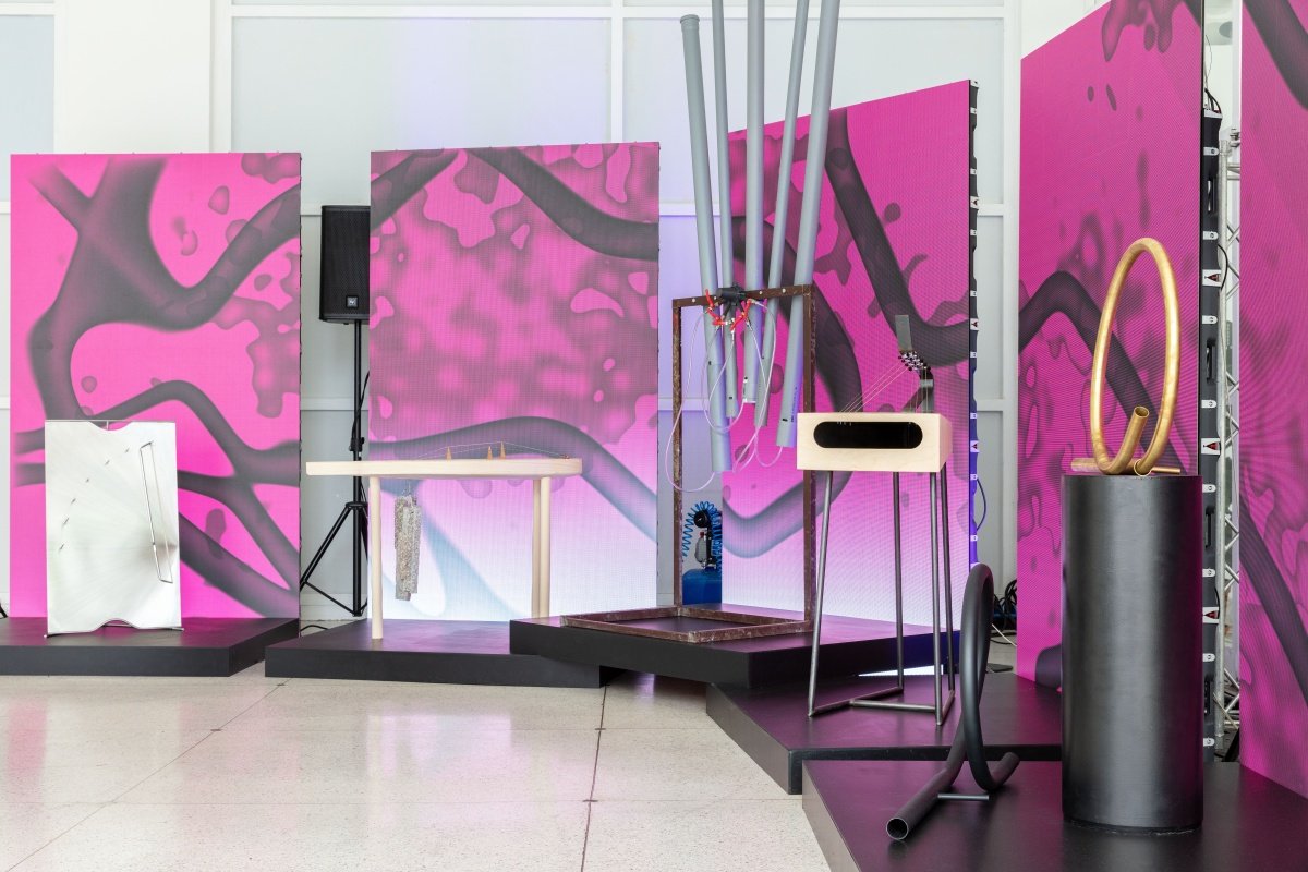 The multimedia student project of UMPRUM.wav was presented in the entrance area of Studio Hrdinů. It offers a way to understand the structure of music and is a unique view of musical instruments. It was first presented during this year's Milan Design Week. The project, dominated by the Studio of Product Design led by Michal Froňek and Jan Němeček, offers a way to perceive music and musical instruments from an unconventional perspective. The connection between the world of music and the world of design was presented through unique original musical instruments combining unconventional acoustic and visual compositions. A special mixing console invited visitors to play with sound and immerse themselves in the duality of analogue and digital, acoustic, and visual experimental experience. The collaborative project is the culmination of cooperation across product, graphic, and digital design, as well as a long-term collaboration between designers, leading Czech musicians, and music theorists. For example, the musician and composer Never Sol and the company Quix actively participated in the project.