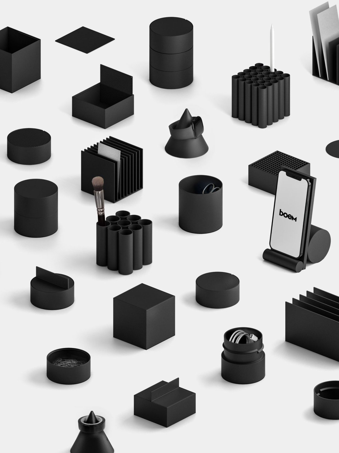 Aleš Boem will present models of products for 3D printers that were created under the brand Boem Store digital e-shop. He uses digital art to react to changes that the virtual world brings to society - the shift in interpersonal interactions and the way of perceiving the world in cyberspace. The exhibited minimalist collection Nothing Else meets the needs of the simplest printing and very low material consumption.