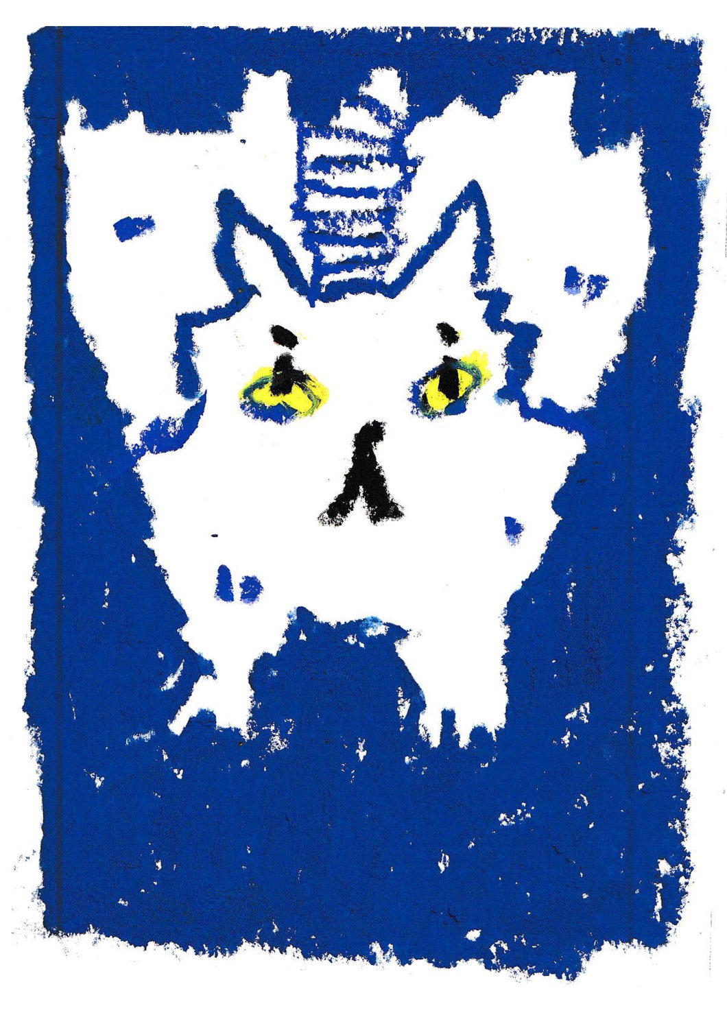 In Xao he will show a lot of colorfull wax pastel drawings and paintings of self cat portraits. In his drawings